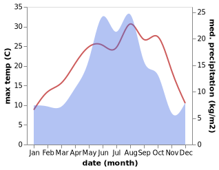 Located at 44.33 41.93 (Lat./Long.); Less than 19 km away