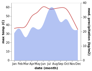 The climate of Muscat features a hot, arid climate with long and very hot summers and warm winters. Annual rainfall in Muscat is about 100 mm (4 in), falling mostly from December to April. In general, precipitation is scarce in Muscat with several months, on average, seeing only a trace of rainfall. The climate is very hot, with temperatures reaching as high as 49°C (120°F) in the summer.